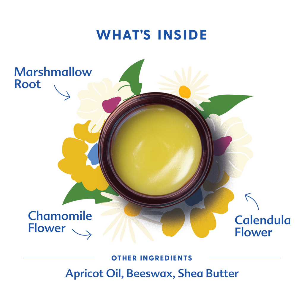 Everyday Baby Balm is a lightweight salve infused with soothing organic herbs. This herbal balm is lightly scented with chamomile flowers and is the perfect moisturizer for bath time, bedtime, and anytime.